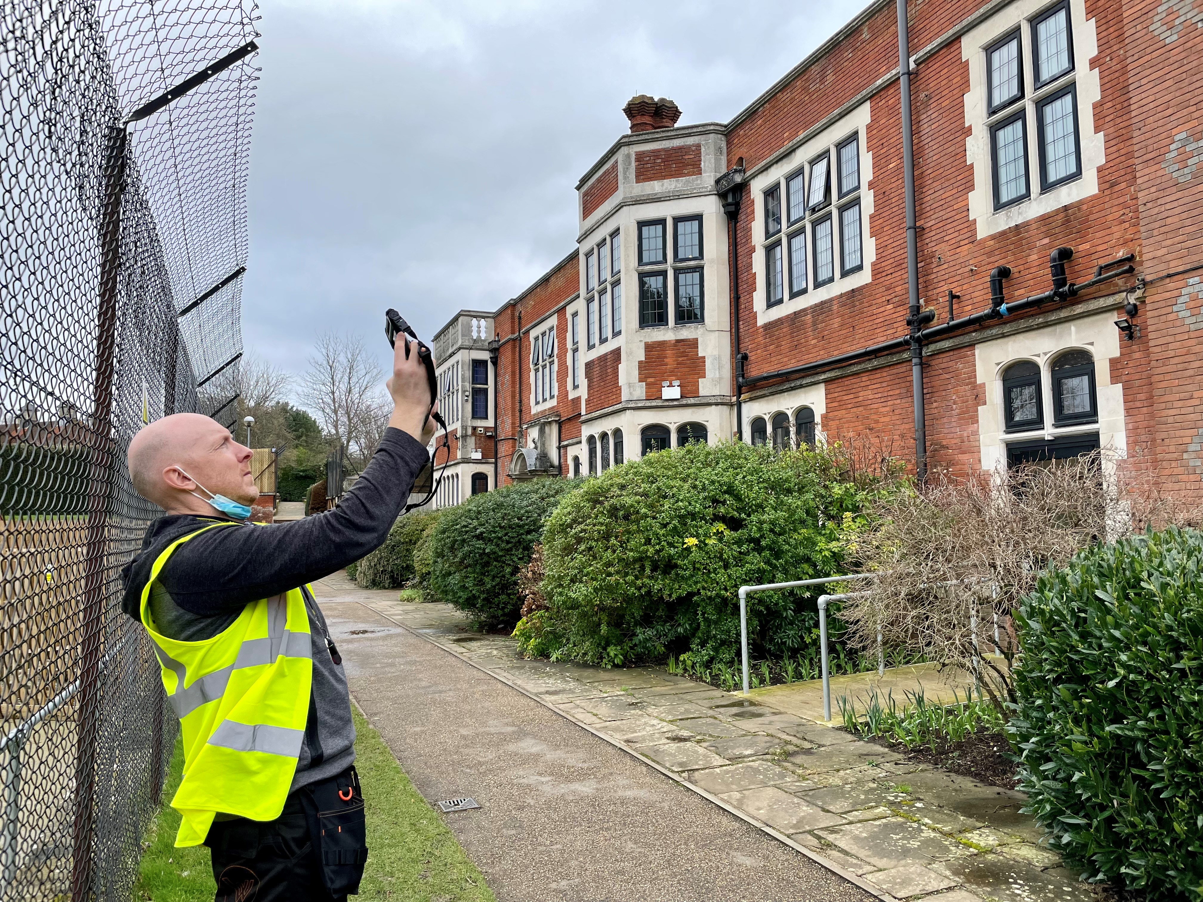 A Sircle Fire Safety Surveyor capturing data and imagery at St Joseph’s School .