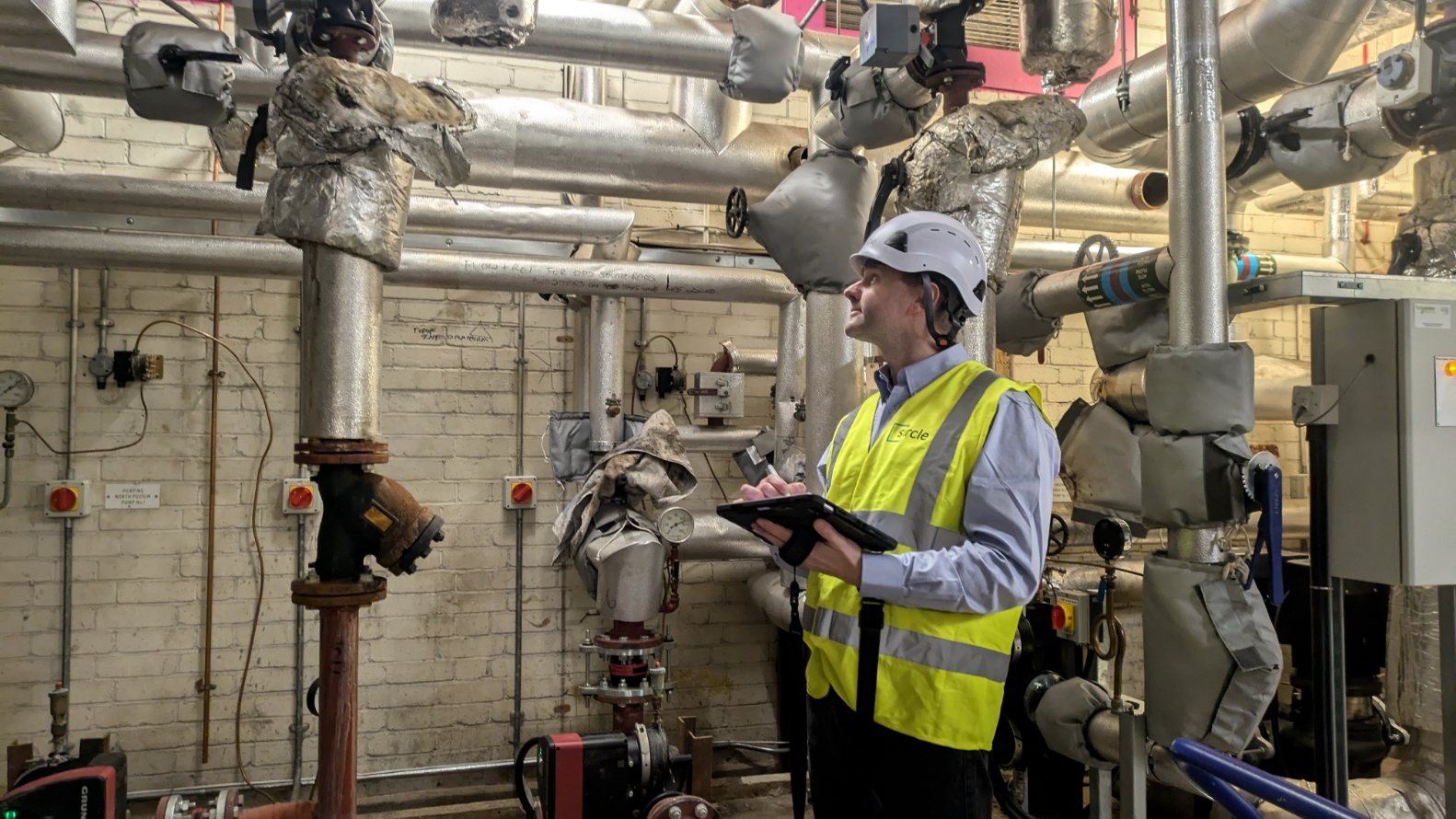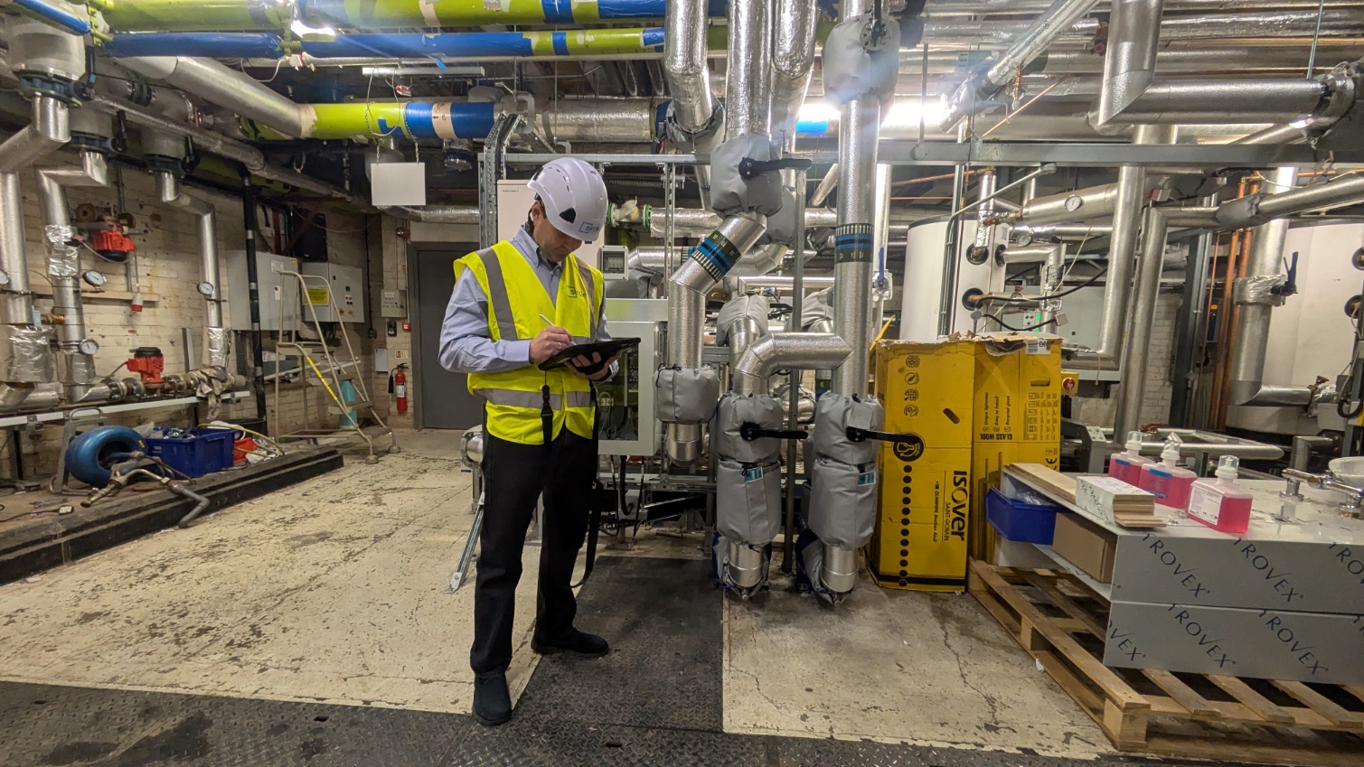 A Sircle M&E Surveyor carrying out an audit in a plant room.